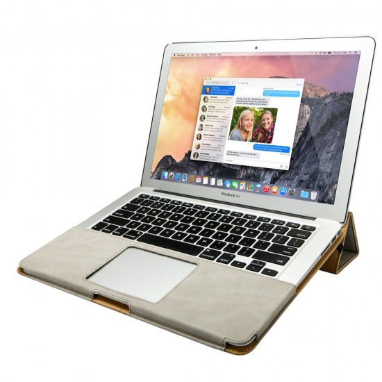 - Thiết kế bao da Jisoncase thật tiện dụng, như một cuốn sổ da cao cấp, khi dùng có thể mở ra dùng luôn, hoặc có thể cuộn thành đế đỡ macbook của bạn nâng cao