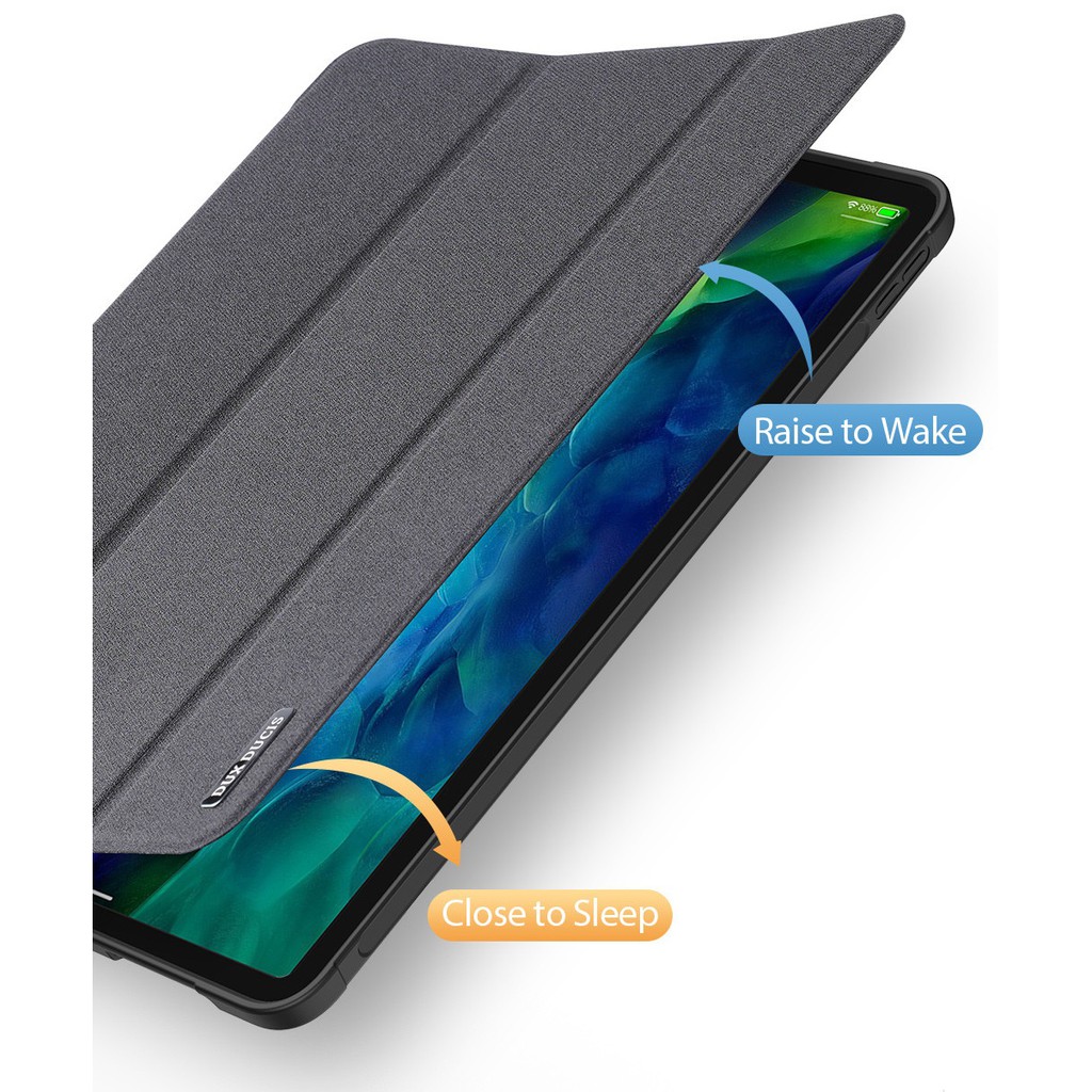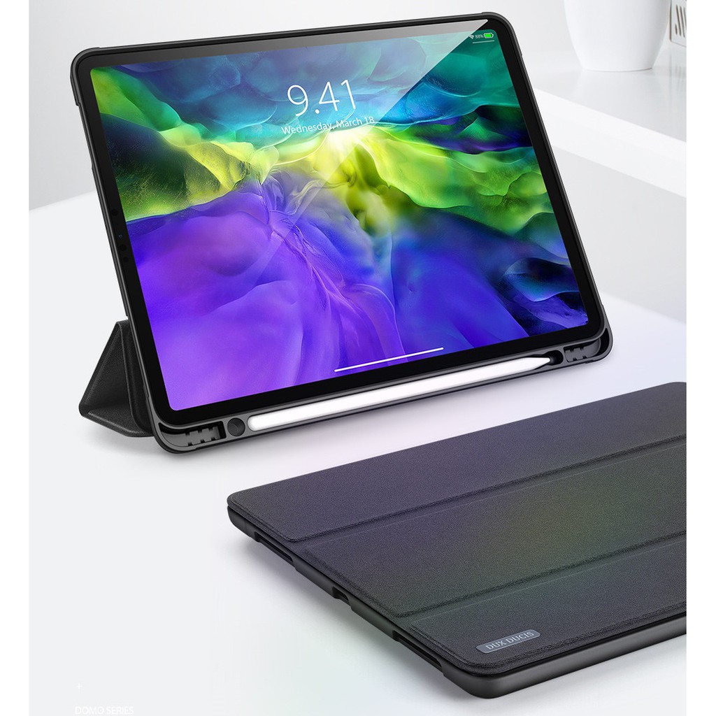 - Bao da Dux Ducis Domo Series iPad lạ mắt với bề mặt vải và đế ốp TPU chống sốc bảo vệ tốt cho máy. Bề mặt bền bỉ, sang trọng, khó bám bẩn.