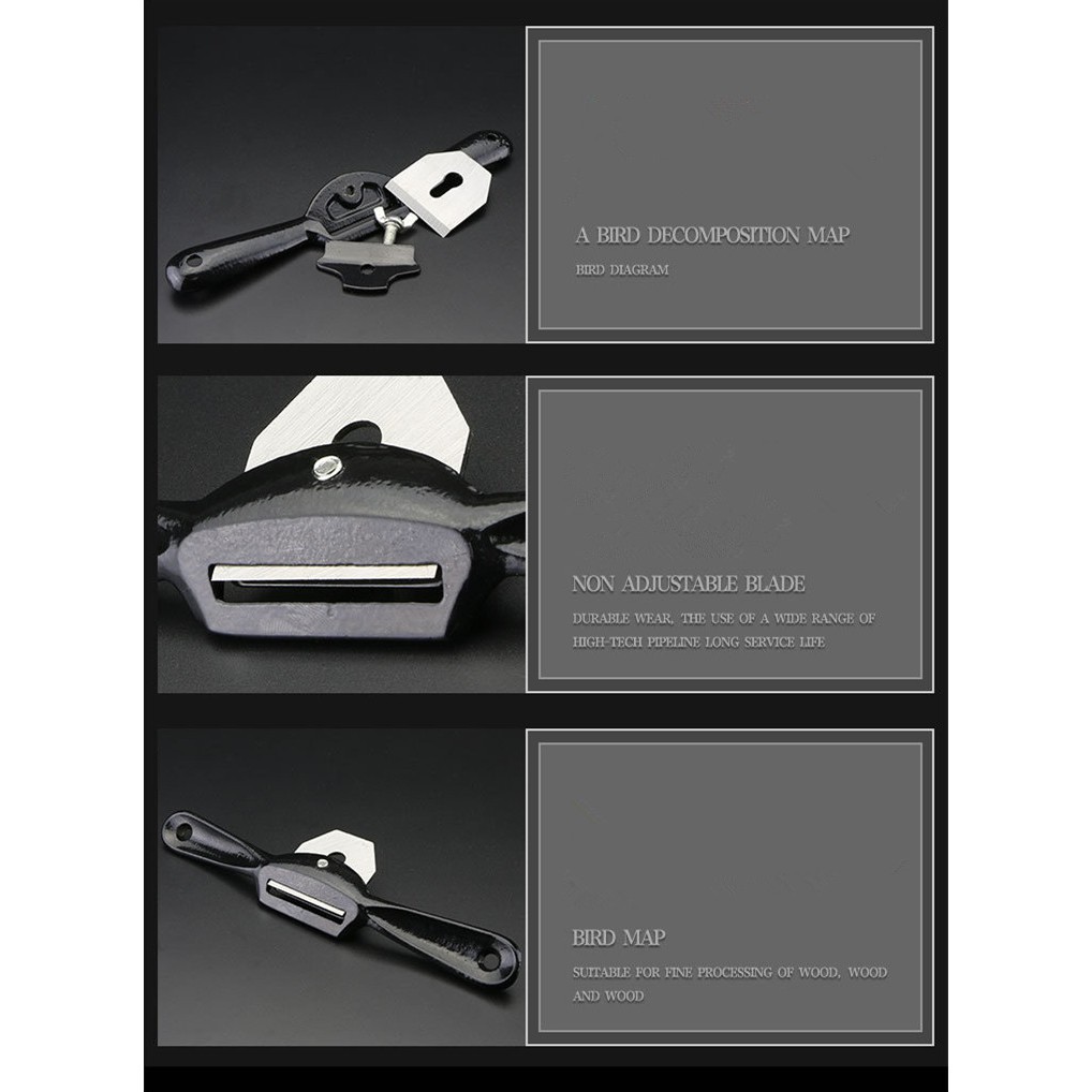 Bào gọt gỗ được làm bằng chất thép sắt, bên ngoài sơn tĩnh điện. Lưỡi bằng thép HRC58-60, với chiều ngang của lưỡi bào 48mm,chiều cao của lưỡi bào 44mm.