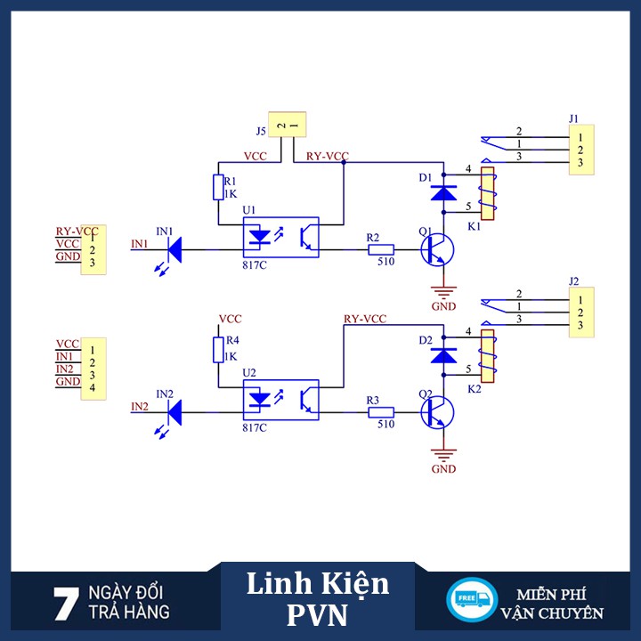 Chân IN: kích mở relay(kích mức thấp)
