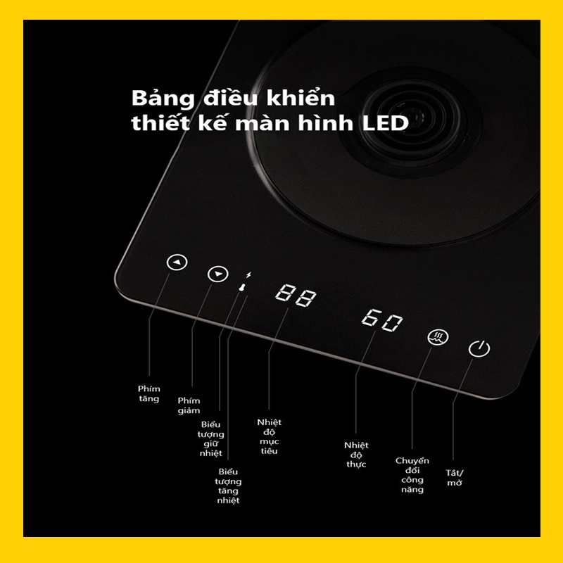Ấm không chỉ sử dụng màn hình Led lớn, Bộ điều khiển nhiệt STRIX của Anh . Ấm còn có 5 mức tùy chỉnh nhiệt độ theo thói quen và sở thích người dùng. Nhiệt độ mặc định của nhà máy là 40, 88, 90, 92, 100 độ. Bạn có thể đặt nhiệt độ theo sở thích của riêng mình chẳng hạn 40, 60, 85, 95, 100 độ. Giup việc pha chế trở nên thuận tiện, bạn không cần đến nhiệt kế để đo nhiệt độ nữa.