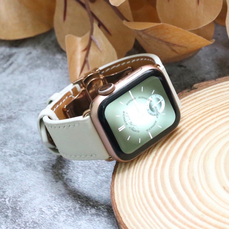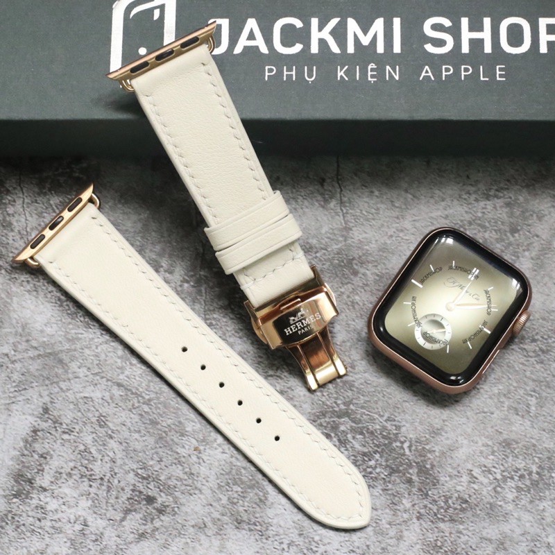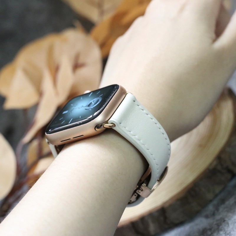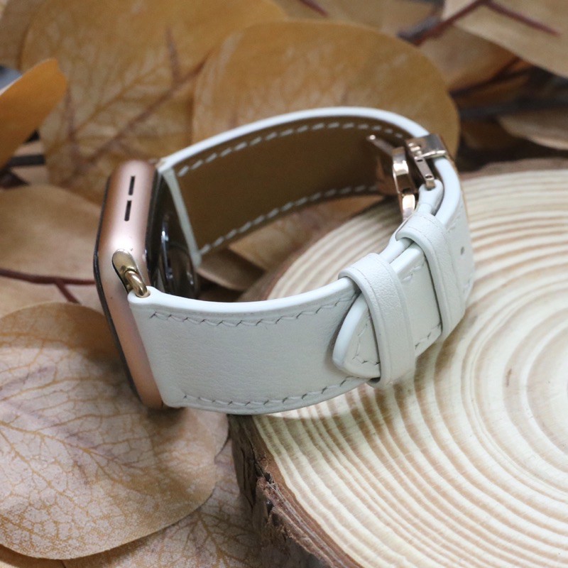 Giới thiệu [BẢO HÀNH 1 NĂM] Dây Da BÊ SWIFT may tay thủ công màu Kem khóa Bướm cho Apple Watch series 1/2/3/4/5/6/7
