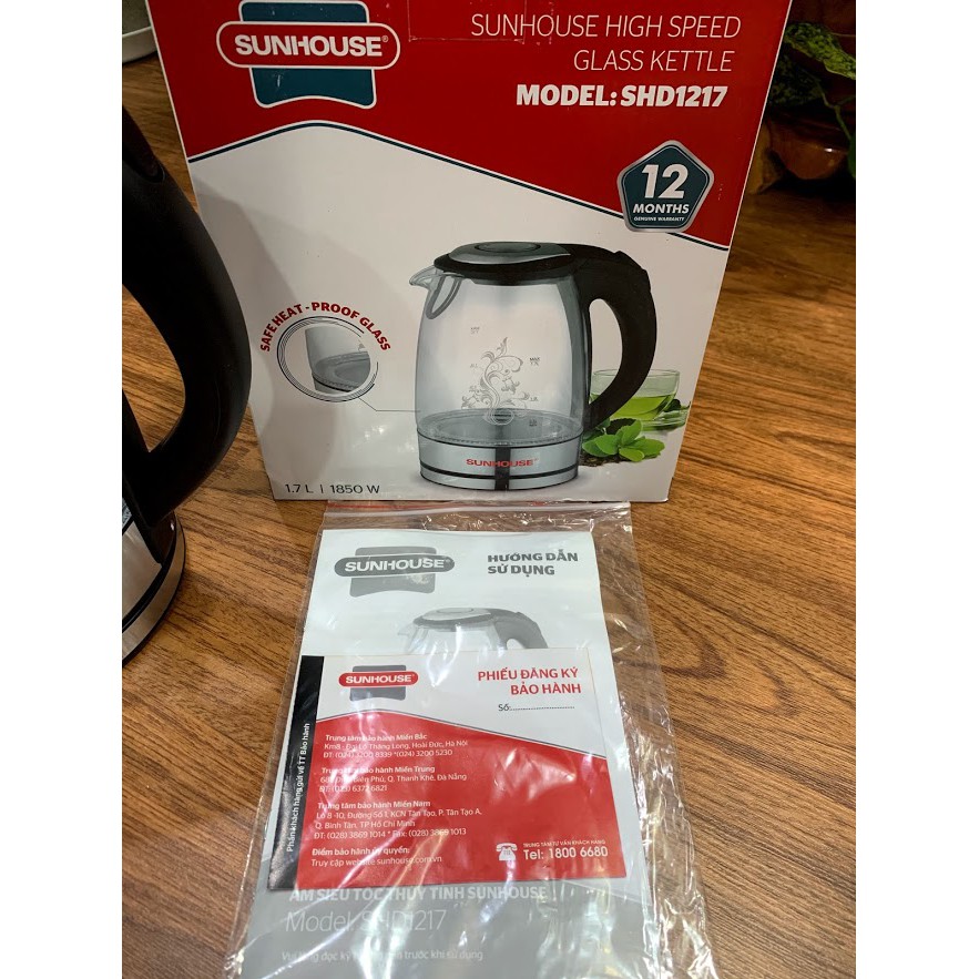 Thiết Bị Điện Gia Dụng > Đồ gia dụng nhà bếp > Ấm đun siêu tốc || [Bảo Hành 12 Tháng] Ấm Siêu tốc thủy tinhSUNHOUSE SHD1217 dung tích 1.7L, công suất 1850W(hàng chính hãng)Còn hàng