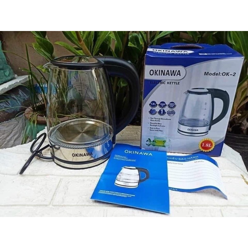 Bình đun siêu tốc thủy tinh OKINAWA OK-2 Công Suất 1500W Có Đèn UV Khử Khuẩn-----------------------------------------------------------------------------------------------