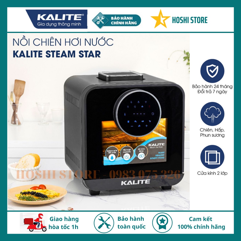 Tên sản phẩm: Nồi chiên hơi nước Kalite Steam Star, công suất 1800w, dung tích 15L, công nghệ chiên hấp 2in1 là dòng nồi chiên hơi nước thế hệ mới, kết hợp chiên không dầu và hấp phun sương, chiên hơi nước hiện đại.