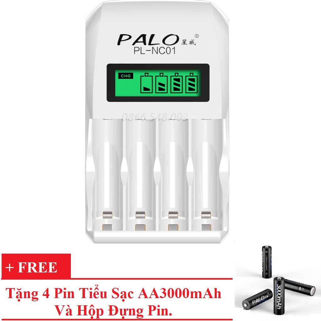 [Có bảo hành] Bộ sạc pin tiểu đa năng tự ngắt bốn khe PALO C907 Tặng 4 pin AA3000