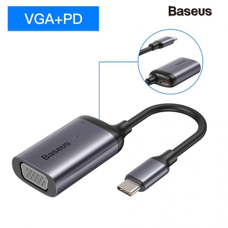 Cáp Chuyển Đổi Baseus Enjoyment Series Type C - VGA Hub Convertor chuyển đổi cổng Thunderbolt trên Macbook Pro 2016/2017/2018 hay cổng USB Type C trên các smartphone/ Tablet/ Laptop Android/Windows.- Ngỏ vào: cổng USB Type C