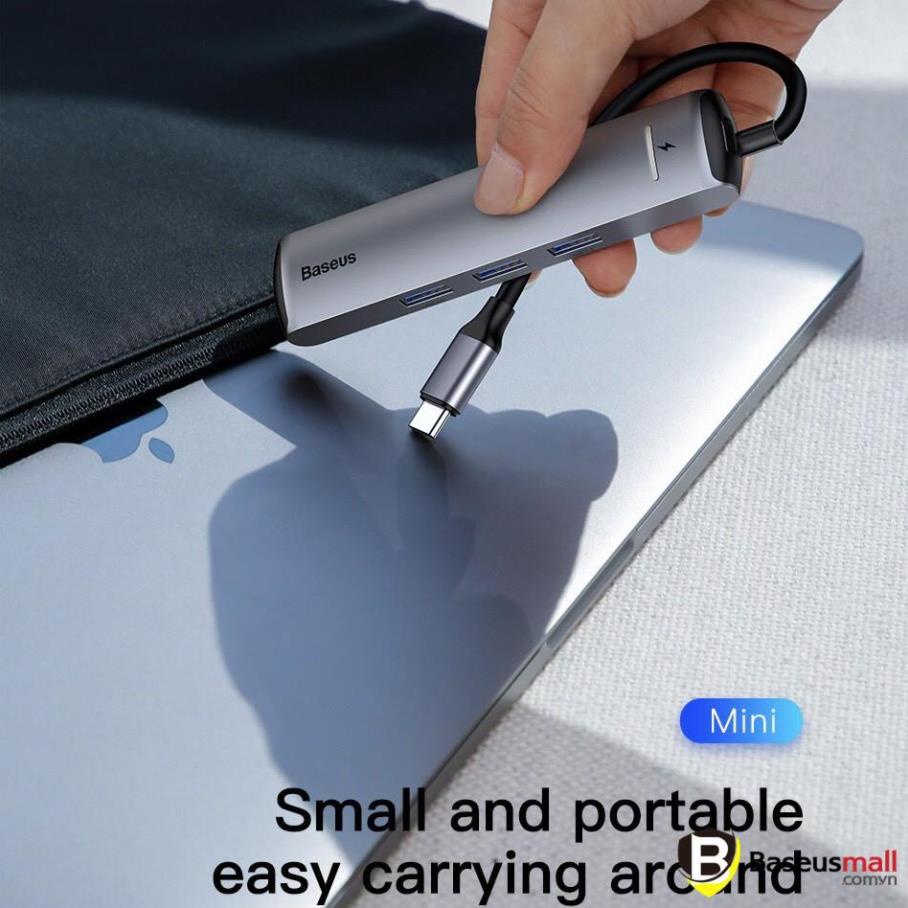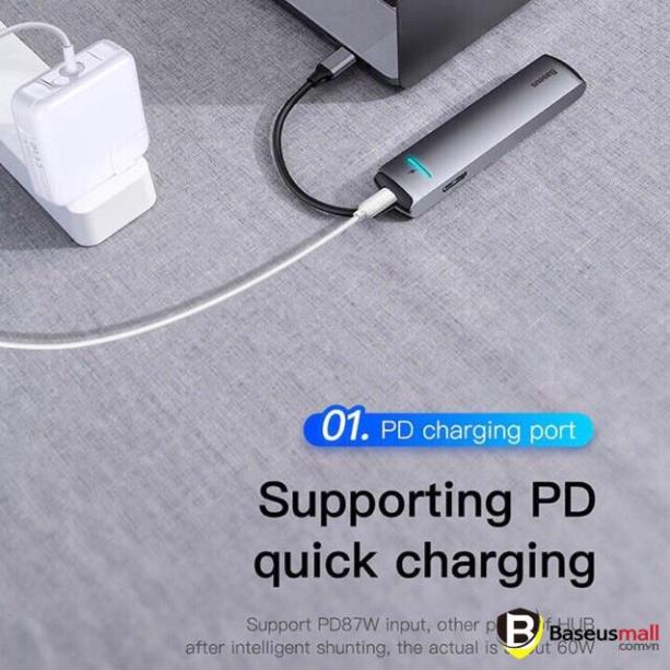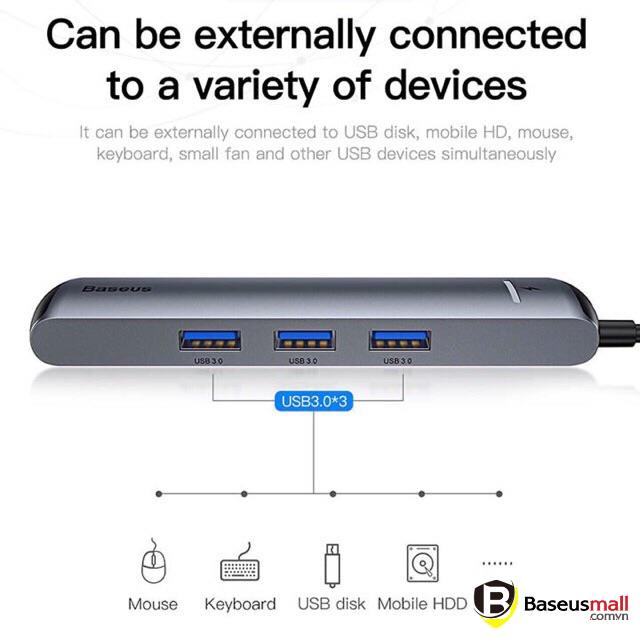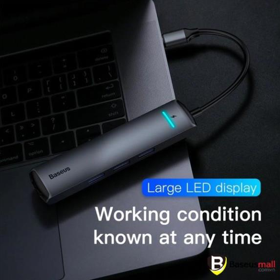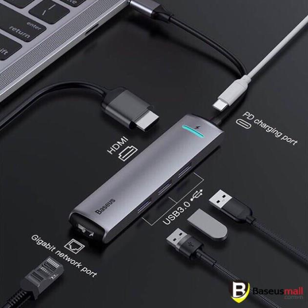 HUB CHUYỂN TYPE C BASEUS MECHANICAL EYE 6 IN 1 TYPE-C TO 3USB3.0 TYPE-C PD HDMI RJ45-LAN CHÍNH HÃNG bạn có thể dễ dàng kết nối và chia sẽ dữ liệu từ Smartphone , tablet, Laptop/ Macbook với các thiết bị ngoại vi, ổ đĩa ngoài qua cổng type C và các loại màn hình lớn để chia sẽ hình ảnh / video qua cổng HDMI .HUB CHUYỂN TYPE C BASEUS MECHANICAL EYE 6 IN 1 TYPE-C TO 3USB3.0 TYPE-C PD HDMI RJ45-LAN CHÍNH HÃNG hỗ trợ chuyển đổi cổng USB Type C sang cổng 6 cổng kết nối phổ thông . Bao gồm : USB 3.0 x 2 cổng, 1 cổng HDMI, 1 cổng mạng LAN RJ-45 tốc độ cao và 1 cổng Type C hỗ trợ Power Delivery (PD Fast Charge).