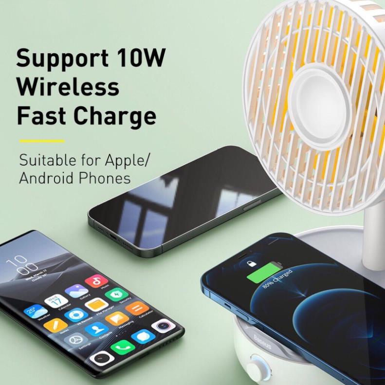 Điện Thoại & Phụ Kiện > Phụ kiện > Quạt USB & Quạt điện thoại || Baseus -BaseusMall VN Quạt để bàn thông minh hỗ trợ sạc không dây Baseus Hermit desktop wirelessCòn hàng