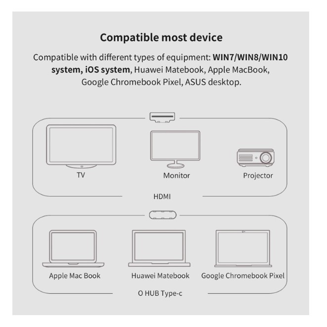 Cho phép bạn phản chiếu màn hình hiển thị của máy tính xách tay Type-c với HDTV, màn hình hoặc máy chiếu của bạn ở độ phân giải 4K HD
