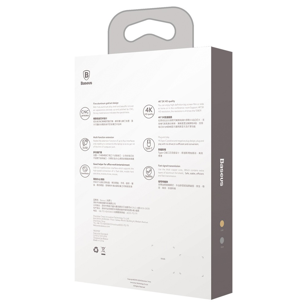 BASEUS O HUB 5 Cổng mở rộng chuyển đổi đa chức năng Desktop Type-C (3 x USB 3.0 + 1 x HDMI + 1 x Type-c)Vỏ hợp kim nhôm anodized, chống mài mòn, tinh tế và sang trọng