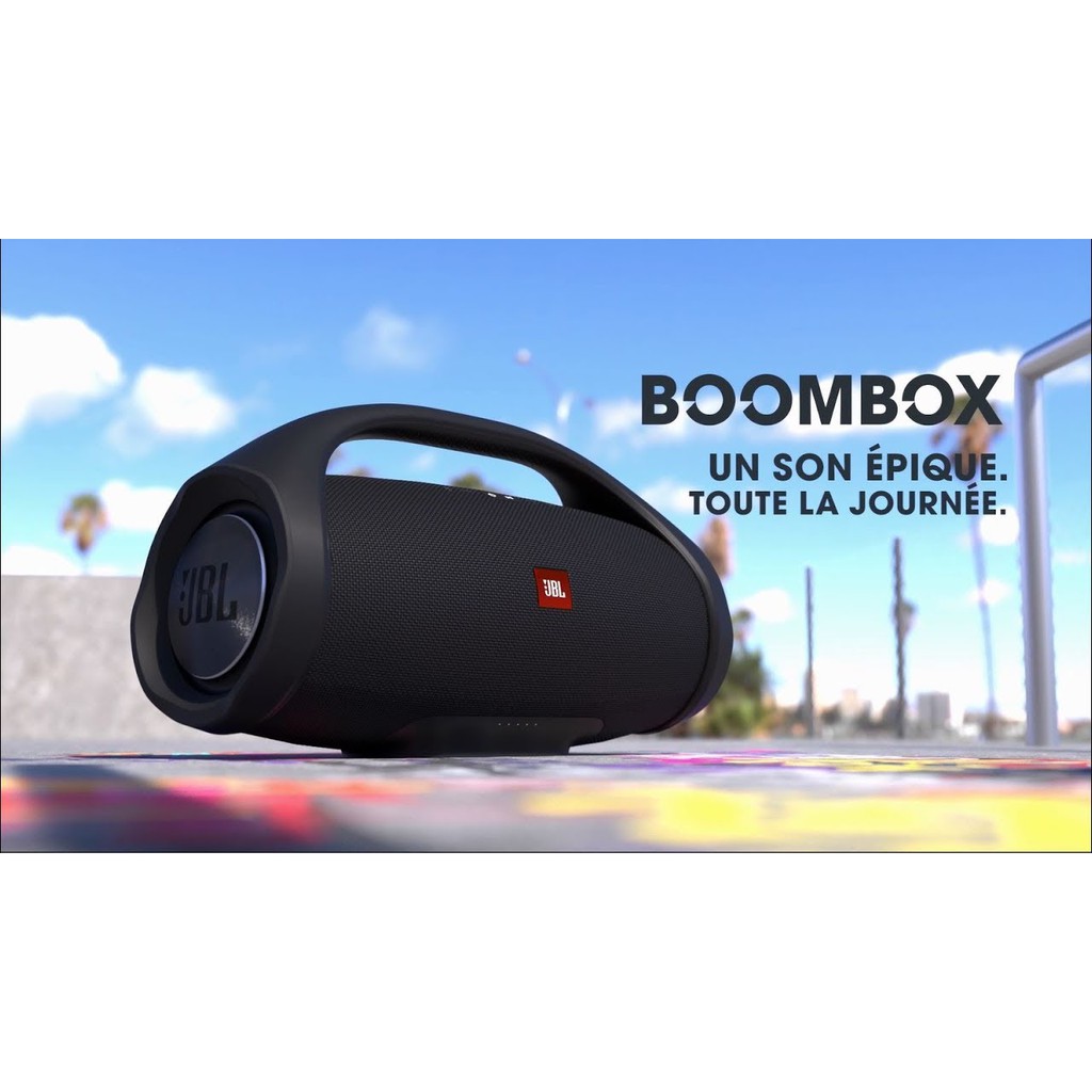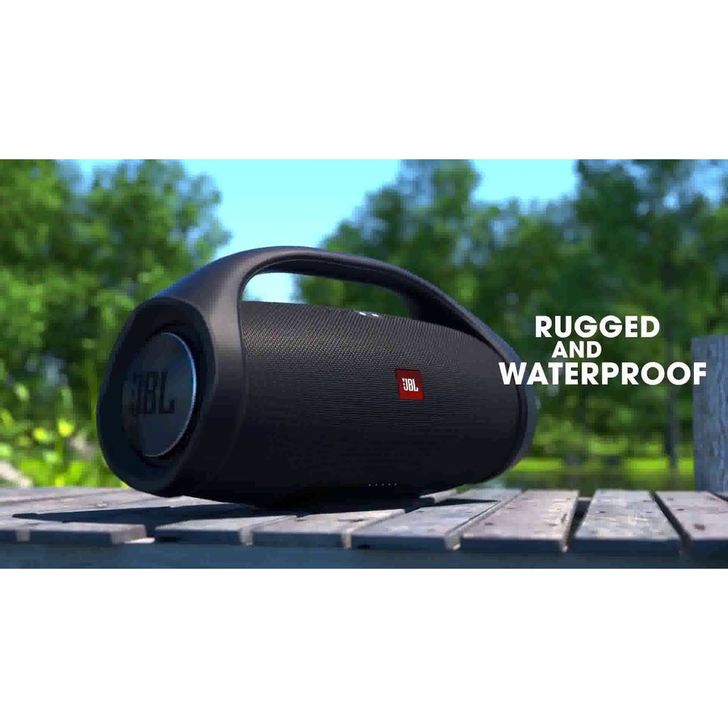 - JBL Boombox được thiết kế để phù hợp với yêu cầu mang đến âm nhạc sôi động và mạnh mẽ, giàu năng lượng cho những buổi tiệc hay những buổi dã ngoại