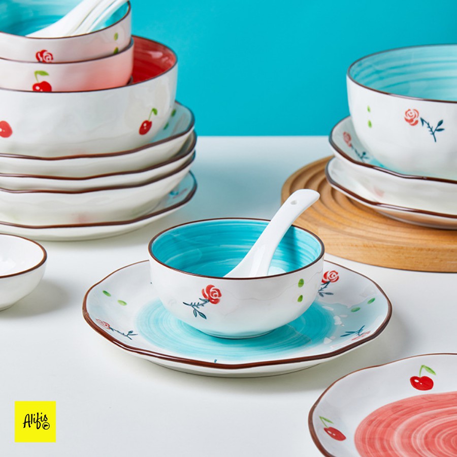 Nhà cửa & Đời sống > Bộ đồ bàn ăn > Tô || Bát ăn cơm, bát gia vị và muỗng – họa tiết hoa hoa hồng và anh đào sang trọng - phong cách Nhật BảnCòn hàng