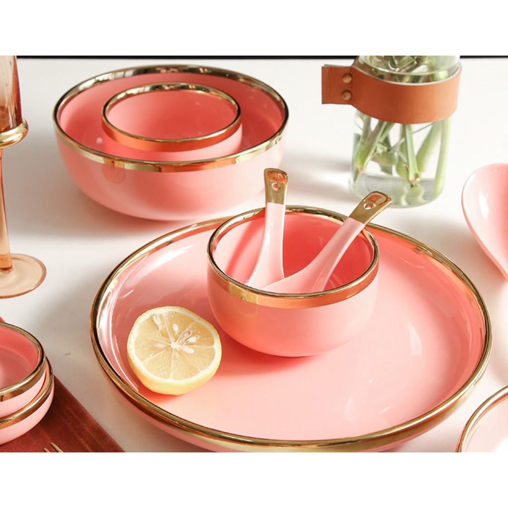 Giới thiệu Bát Ăn Cơm Bộ Bát Đĩa Sứ Decor Màu Hồng Bán Lẻ. chén đĩa ăn cơm màu hồng