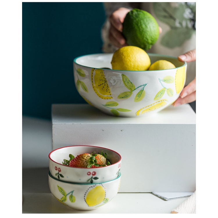 Nhà cửa & Đời sống > Bộ đồ bàn ăn > Tô || Bát ăn cơm, chén chè, bát tô ăn mì, thố đựng salad hoạ tiết chanh vàng lá xanh AlifisCòn hàng
