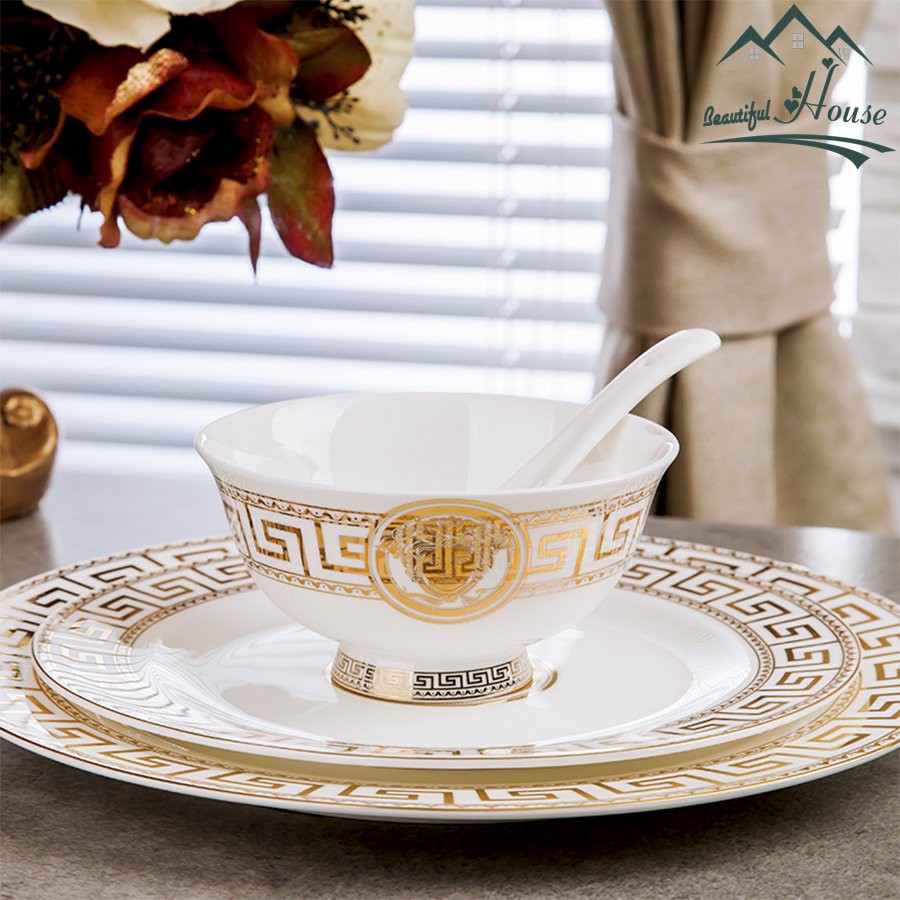 - Bộ bát đĩa Bộ Bát Đĩa Cao Cấp Ver.sace được cấu tạo từ sứ Xương đặc cao cấp, mang lại sự tinh tế và đậm bản sắc của phong cách Châu Âu.