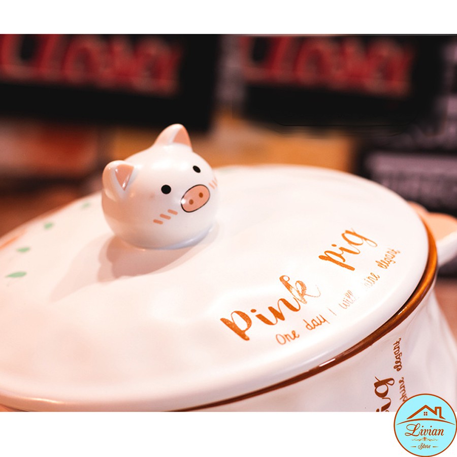 __THÔNG TIN SẢN PHẨM:Sản phẩm: Bát ăn mì, tô ăn phở có nắp hình heo thỏ 900ml nhiều họa tiết cực yêu