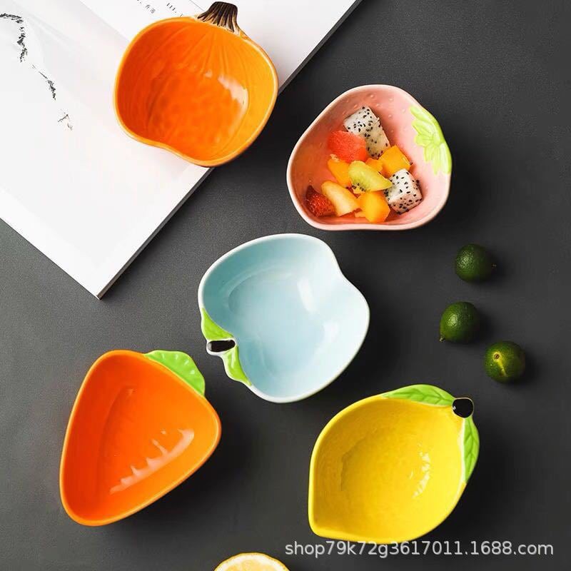 Bát sứ ăn dặm hình hoa quả bắt mắt giúp kích thích bé ăn ngon miệng hơn.