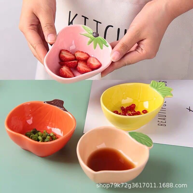 Bát sứ ăn dặm hình hoa quả bắt mắt giúp kích thích bé ăn ngon miệng hơn.