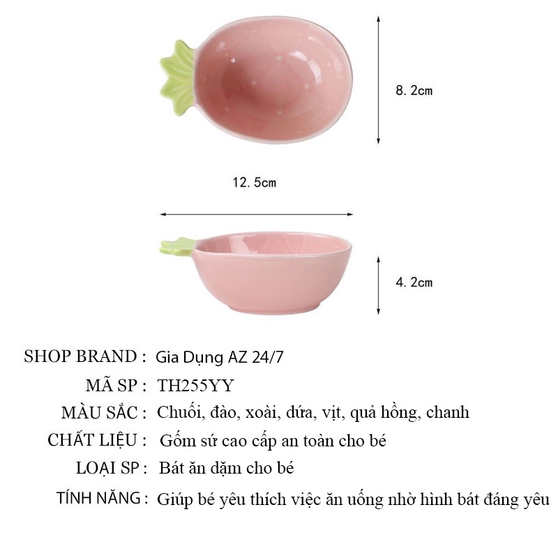 Giới thiệu Bát chén ăn dặm cho bé gốm sứ cao cấp hình thú hoa quả đáng yêu AZ TH255YY