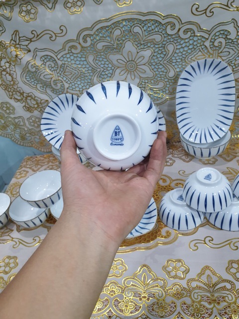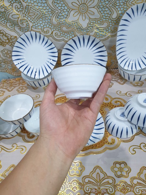 Giới thiệu Bát Cơm-Bát Chấm-Đĩa Muối Bát Tràng Cao Cấp Họa Tiết Kẻ-Viền Màu Vàng Sang Trọng-Men Dầy Dặn-Giao Hàng Toàn Quốc