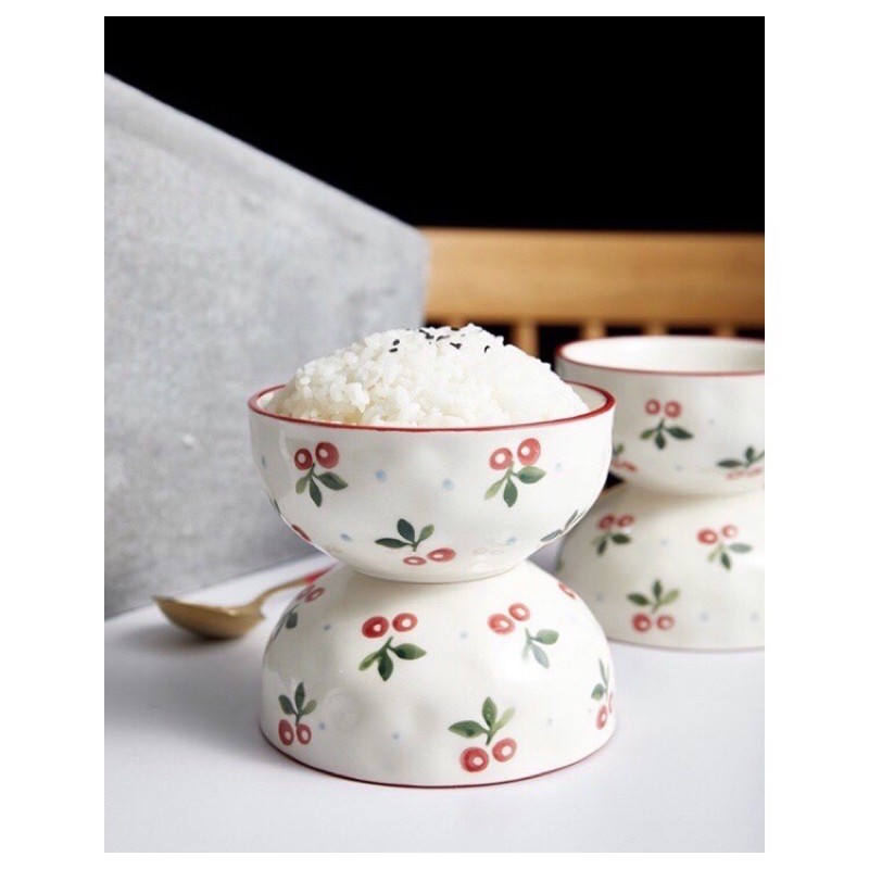 Bát cơm đk 13cm (kích thước tiêu chuẩn) hoạ tiết Cherry hoa hồng đình đám siêu đáng yêu phong cách Bắc Âu hiện đại, sang chảnh, đẹp mắt, với hoạ tiết được vẽ thủ công bằng tay, các bạn yêu bếp, thích nấu ăn và chụp ảnh đồ ăn ko thể bỏ qua các mẫu bát đĩa nhà e đâu ạ 🍃Cam kết hàng chuẩn loại 1 chính hãng, hoạ tiết sắc nét, nước men rất sáng và đẹp, chất gốm đanh chịu dc nhiệt độ cao (bộ bát đĩa Cherry trên thị trường có rất nhiều hàng giả, hàng nhái chất lượng kém và ko đạt tiêu chuẩn, khách lưu ý khi chọn mua nhé).