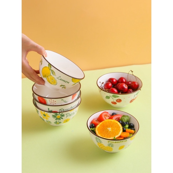 Bát ăn cơm sứ sạch dáng bát tròn hoạ tiết các loại trái cây xinh xắn, bắt mắt, màu sắc đa dạng đáng yêu 😍Bát đĩa bằng chất liệu gốm sạch, hoạ tiết và màu men là vĩnh cửu, cam kết an toàn tuyệt đối khi sử dụng với đồ ăn nóng đặc biệt là với các bé, sử dụng an toàn với lò vi sóng, máy tiệt trùng, máy rửa bát hay lò nướng, yên tâm sử dụng cho cả gia đình khách nhé 👍