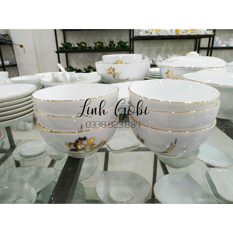 Nhà cửa & Đời sống > Bộ đồ bàn ăn > Tô || Bát cơm kẻ chỉ vàg vẽ senCòn hàng