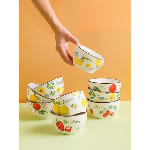 Bát ăn cơm sứ sạch dáng bát đáy vuông sâu lòng hoạ tiết các loại trái cây xinh xắn, bắt mắt, màu sắc đa dạng đáng yêu 😍Bát đĩa bằng chất liệu gốm sạch, hoạ tiết và màu men là vĩnh cửu, cam kết an toàn tuyệt đối khi sử dụng với đồ ăn nóng đặc biệt là với các bé, sử dụng an toàn với lò vi sóng, máy tiệt trùng, máy rửa bát hay lò nướng, yên tâm sử dụng cho cả gia đình khách nhé 👍