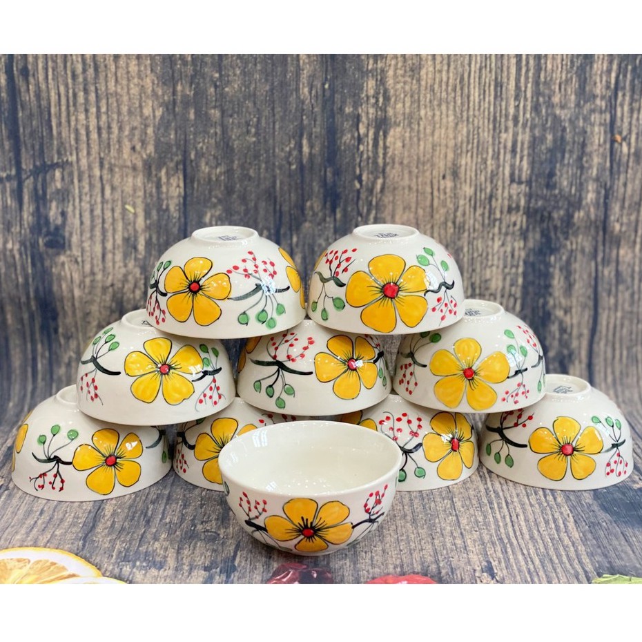 Bát cơm vẽ tay hàng thủ công Bát Tràng chính gốc cao cấpKích thước : Cao 5cm - Đường kính 10cm