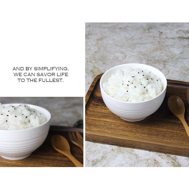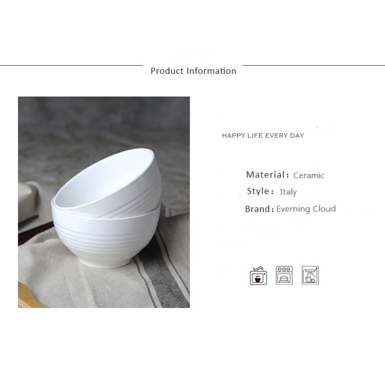 Đây là dòng bát sứ trắng họa tiết phong cách Châu Âu nhập khẩu cao cấp. Bát có chất liệu sứ trắng dầy dặn, họa tiết sọc vằn quanh thân bát tinh tế, cạnh bát bo viền, dầy chắc và chống nóng khi sử dụng.+ Mô tả: