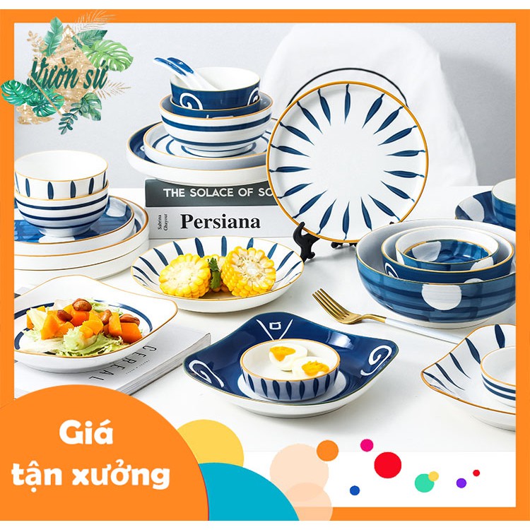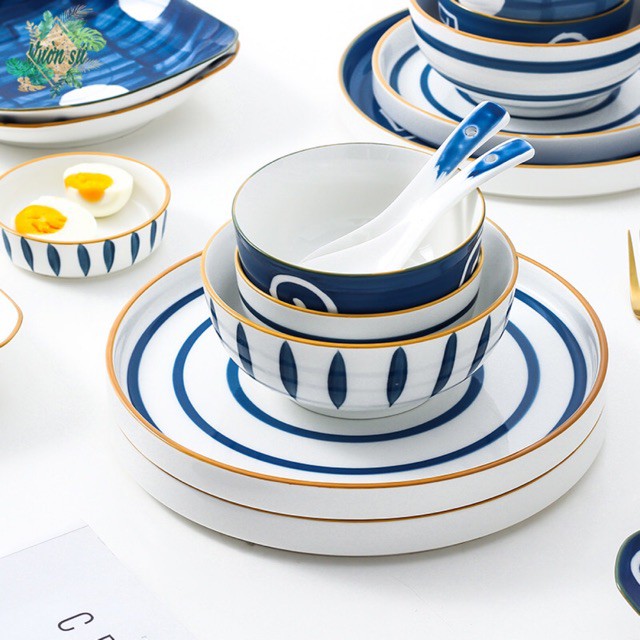 Nhà cửa & Đời sống > Bộ đồ bàn ăn > Dĩa || Bát con, đĩa chấm, thìa sứ họa tiết hoa văn đường kẻ phong cách Nhật Bản - VS70Còn hàng