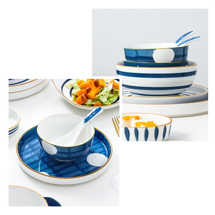 Giới thiệu Bát con, đĩa chấm, thìa sứ họa tiết hoa văn đường kẻ phong cách Nhật Bản - VS70