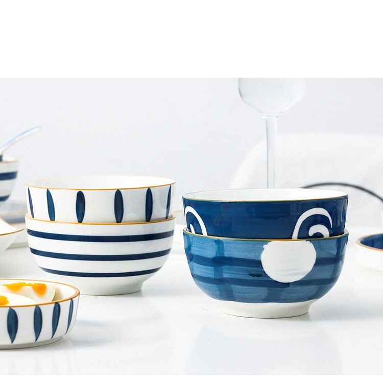 Tên SP: Bát con, đĩa chấm, thìa sứ họa tiết hoa văn đường kẻ phong cách Nhật Bản - VS70Mã SP: VS70
