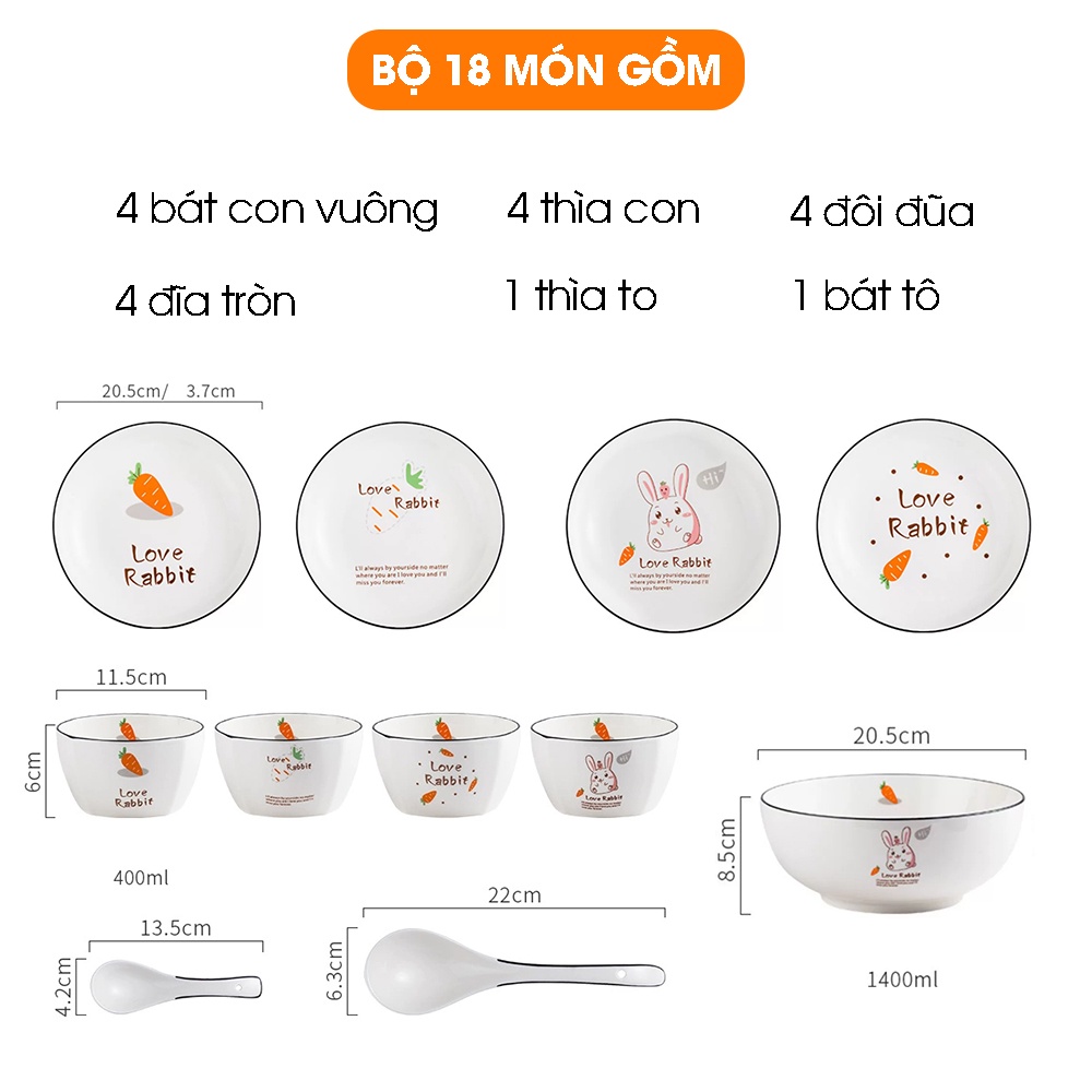 Tên SP: Bộ bát đĩa 18 món LOVE RABBITMã SP: VS35