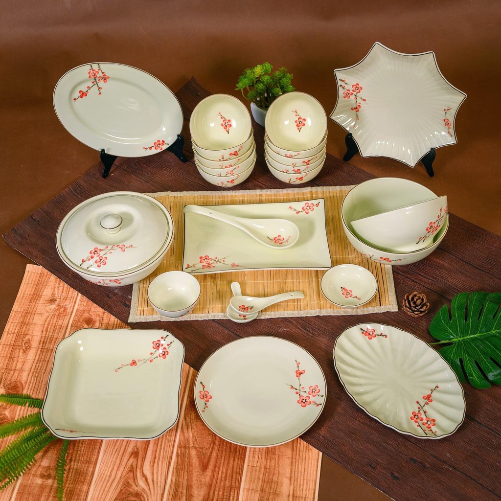 Giới thiệu Bộ Bát Đĩa Đào Đỏ - Tô chén Ăn Cơm - Hàng Loại 1 - Gốm Sứ Bát Tràng