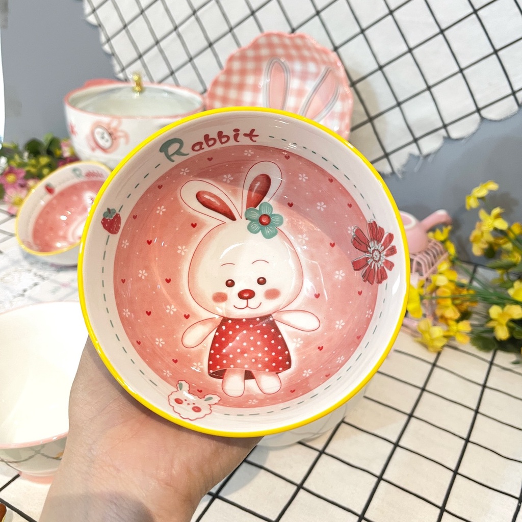 Nhà cửa & Đời sống > Bộ đồ bàn ăn > Tô || Bộ bát đĩa decor siêu đẹp sét thỏ hồng 7 món cho bé xinh yêuCòn hàng