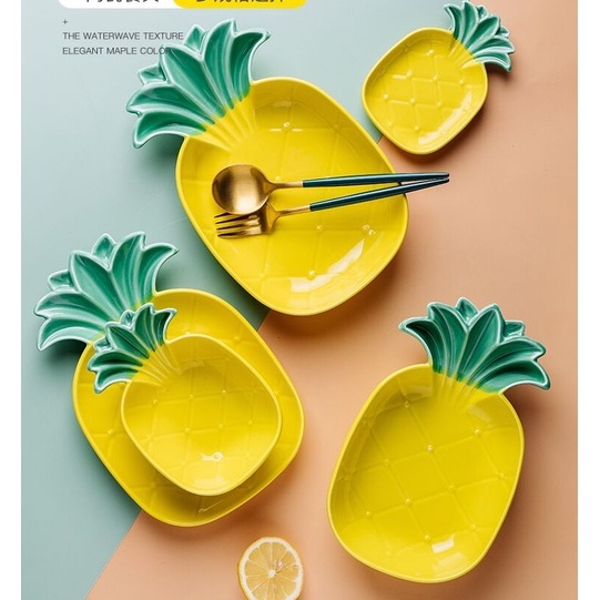 Nhà cửa & Đời sống > Bộ đồ bàn ăn > Dĩa || Bộ Bát Dĩa Gốm Sứ Decor Hình Quả Dứa Vàng Dễ Thương Chịu Nhiệt CaoCòn hàng