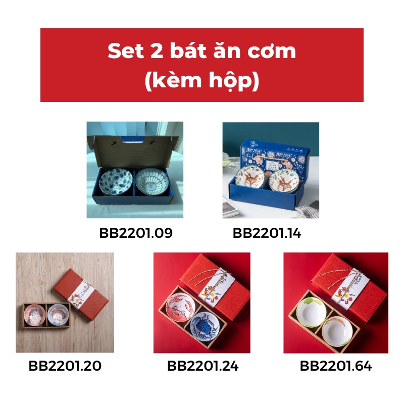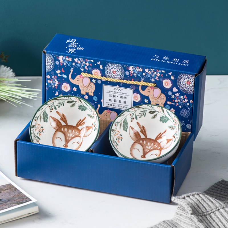 Bát đĩa - Set 2 bát ăn cơm nhiều họa tiết xinh xắn - có hộp đi kèm xinh xắn phù hợp làm quà tặng - sang trọng tiện lợi