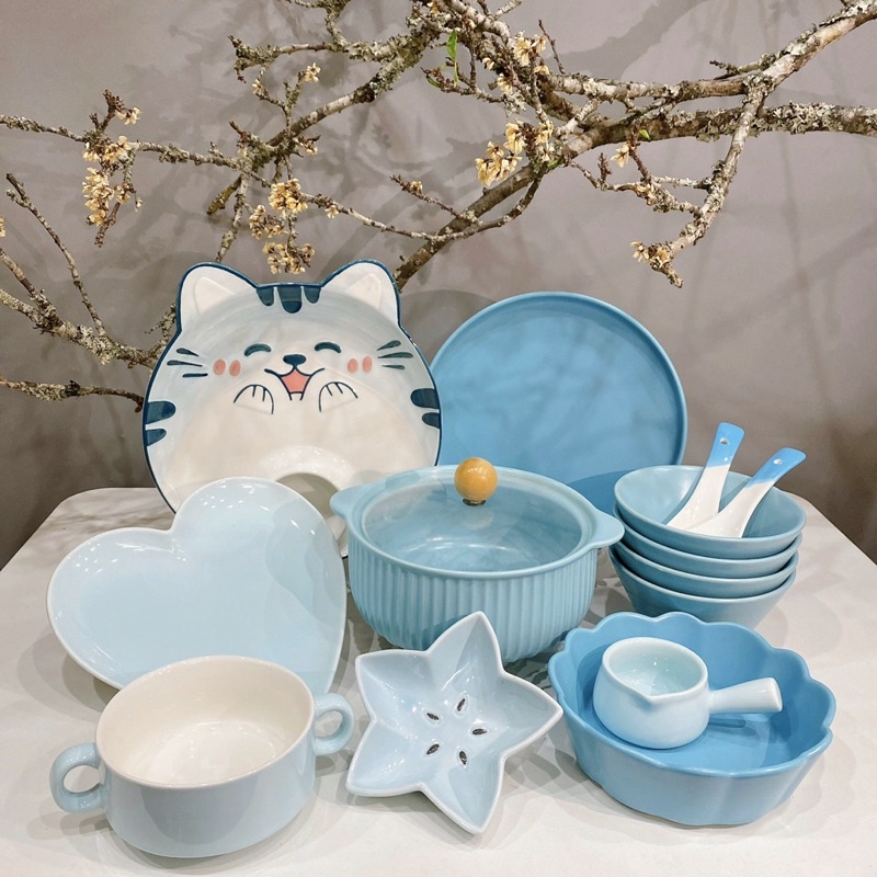 Nhà cửa & Đời sống > Bộ đồ bàn ăn > Tô || Bát Đĩa sứ, Bát ăn cơm, bộ chén dĩ dễ thương, đĩa sứ decor Bộ bát đĩa màu xanh da trời siêu xinhCòn hàng