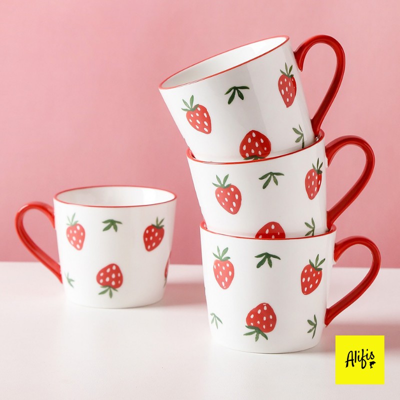 - Bộ sưu tập bát đĩa sứ được thiết kế độc đáo với họa tiết dâu tây đỏ xinh xắn.