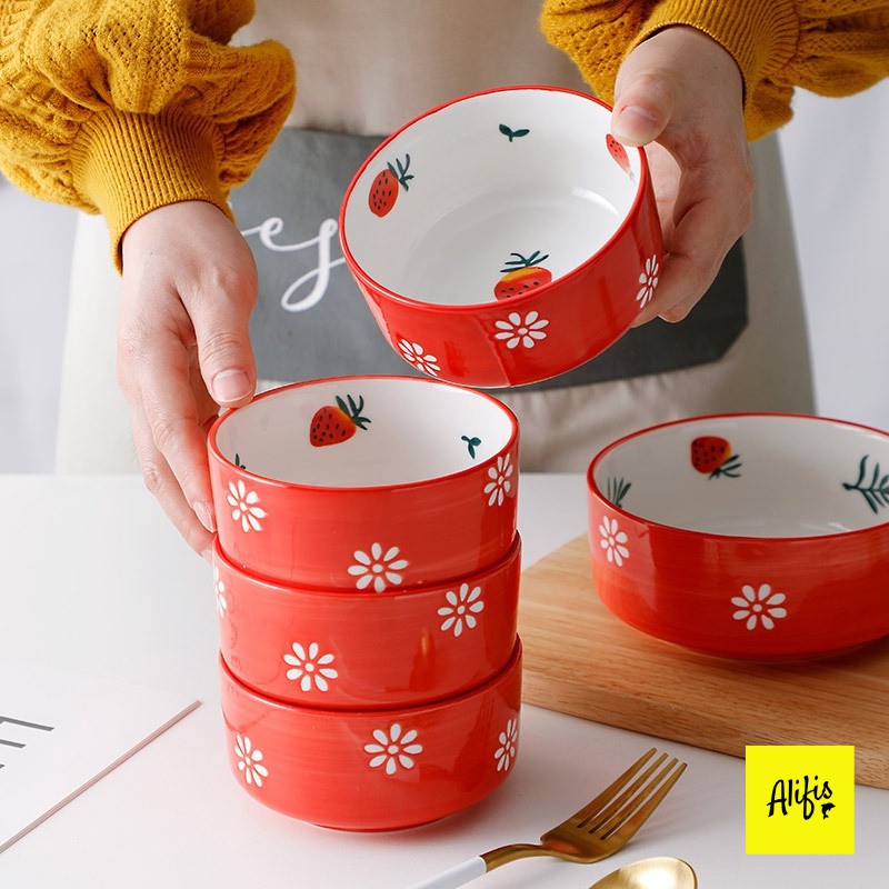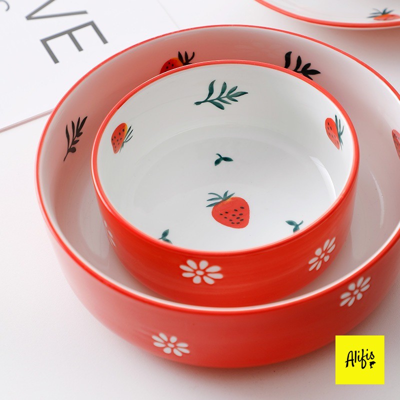 ⭐ THÔNG TIN SẢN PHẨM:🌻 Tên sản phẩm: Bát đĩa sứ, bát đĩa decor họa tiết dâu tây đỏ - phụ kiện bàn ăn (Bán lẻ theo món)