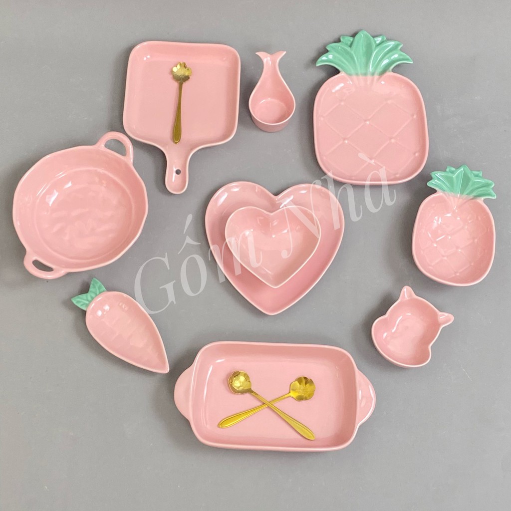 Nhà cửa & Đời sống > Bộ đồ bàn ăn > Dĩa || Bát Đĩa Sứ❣️❣️Bộ Chén Dĩa Decor❣️❣️Dễ Thương Cute Màu Hồng❣️❣️Gốm Sứ Bát TràngCòn hàng