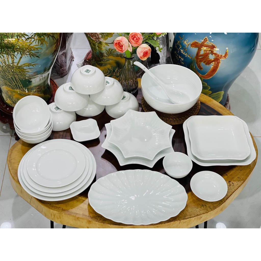 Bộ Bát Đĩa Trắng ăn cơm - Gốm Sứ Bát Tràng < Có bán Lẻ - Nhiều mẫu mã >