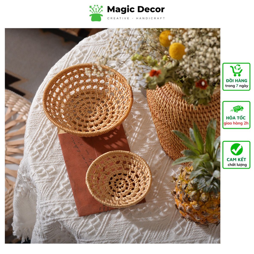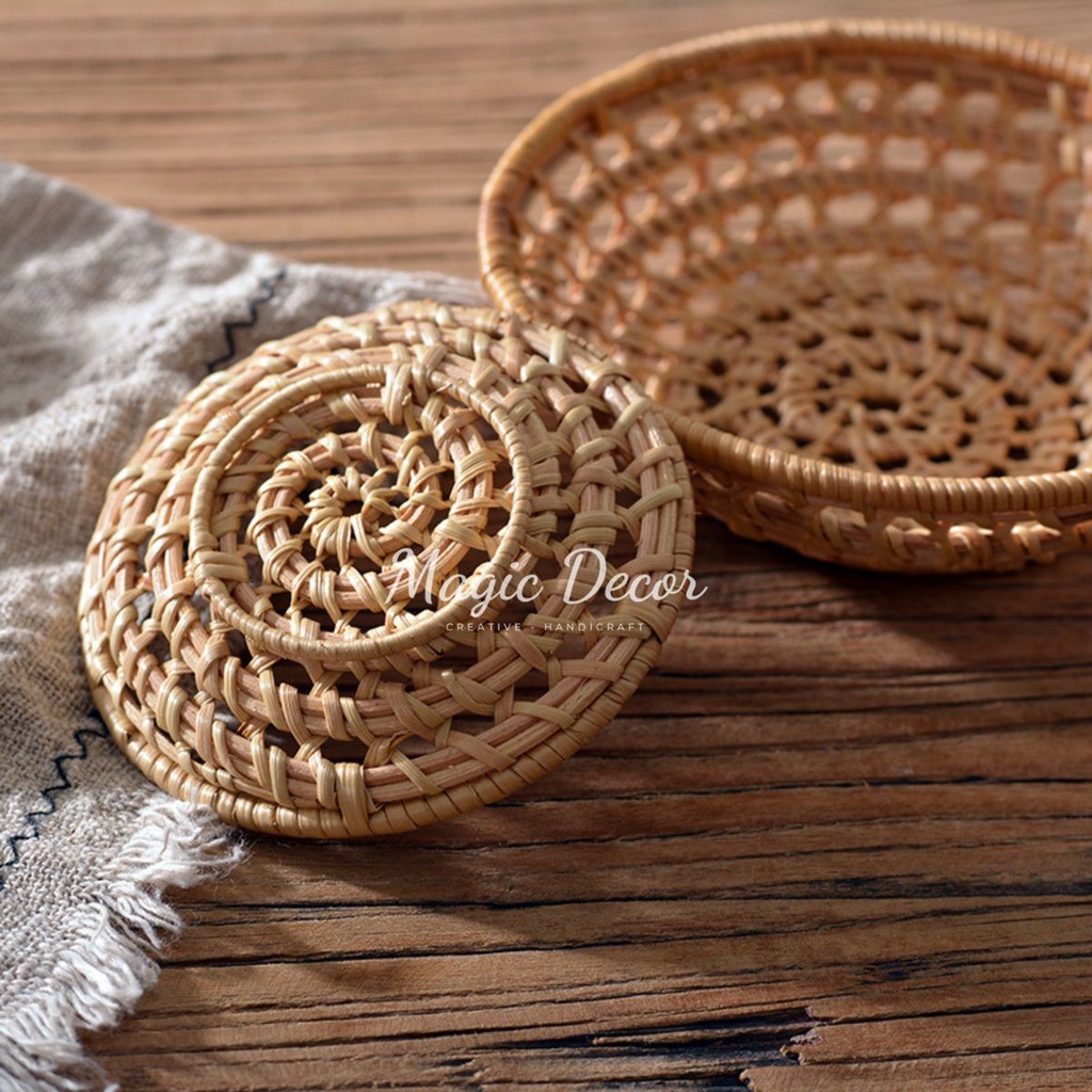 Bát mây tròn đựng đồ ăn, decor trang trí, phụ kiện chụp ảnh đẹp