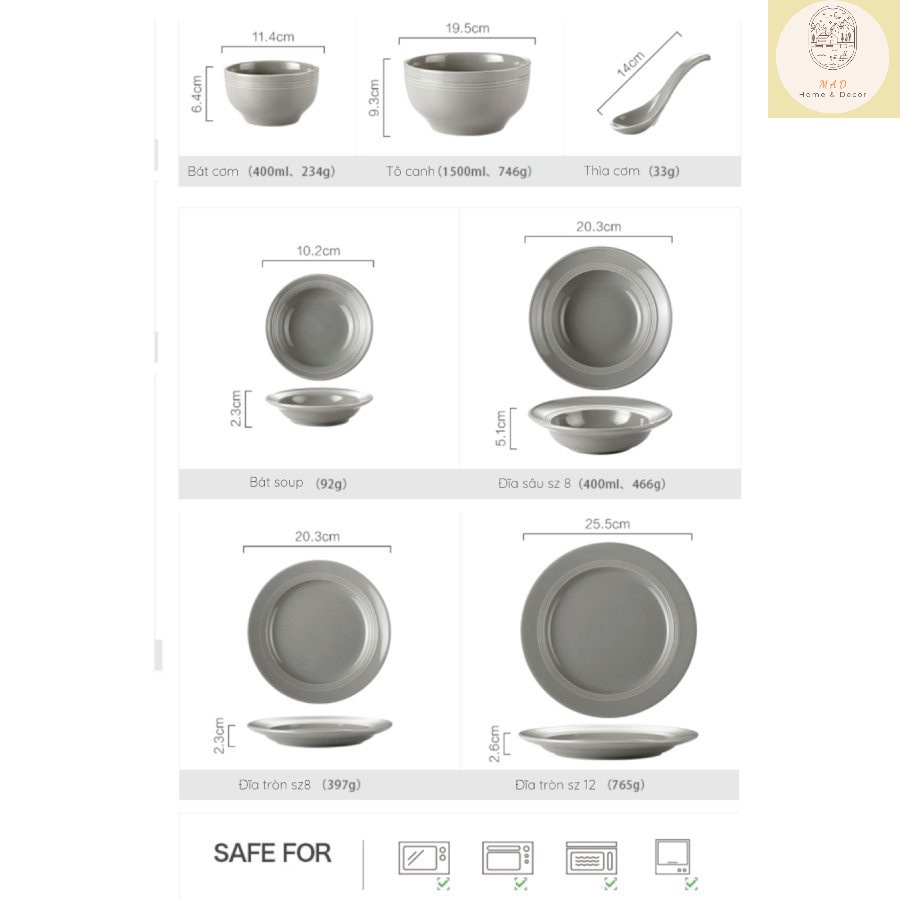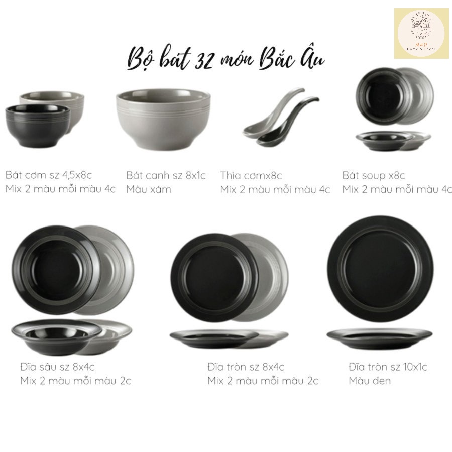 Nhà cửa & Đời sống > Bộ đồ bàn ăn > Tô || Bộ bát phong cách Bắc Âu 34 món dành mix 2 màu đen, xámCòn hàng