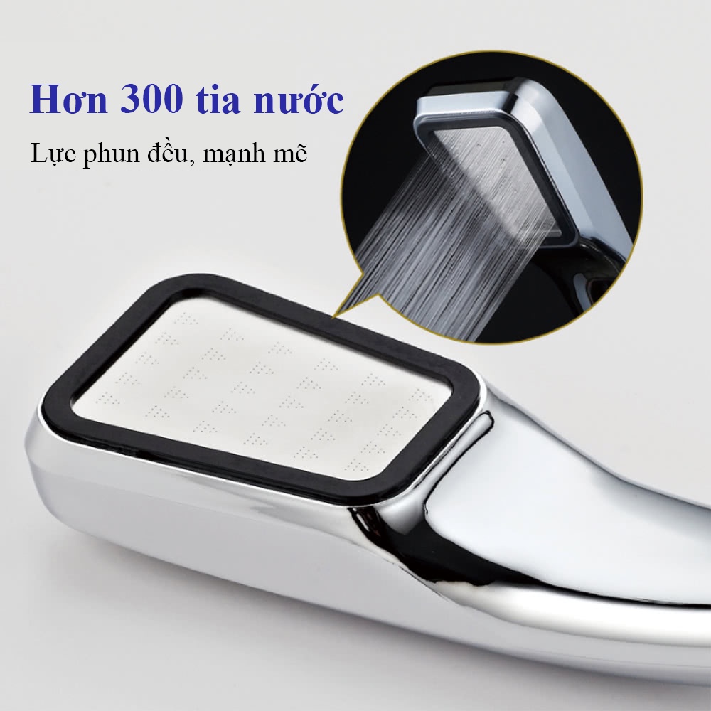 Cấu tạo đặc biệt với 300 tia nước giúp tăng áp lực nước lên tới 300%, tiết kiệm nước đến 30% cho lượng nước mạnh và đều, thuận tiện cho việc tắm, gội.