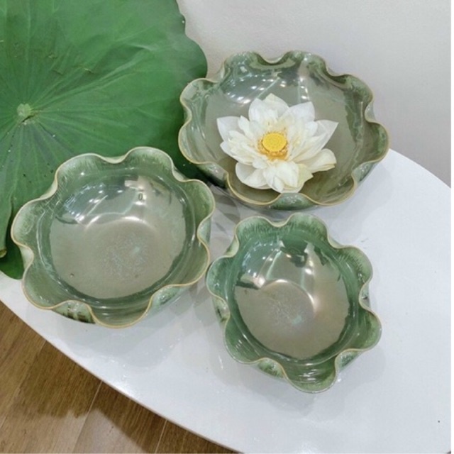 Bát sen thả hoa - Bát Minh Đường Tụ Thuỷ - Chậu Lá Sen Decor