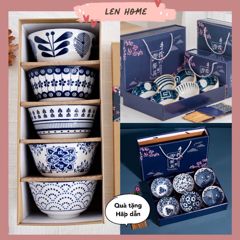 Nhà cửa & Đời sống > Bộ đồ bàn ăn > Tô || Bộ bát sứ men lam phong cách Nhật decor phòng bếp nhà cửa đồ gốm sứ vẽ tay gia đình cốc đĩa lenhomeCòn hàng