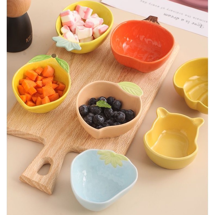Bát sứ mini đựng đồ ăn cho bé, bát sứ nhỏ dễ thương đựng gia vị chấm nhiều hình dáng đáng yêu